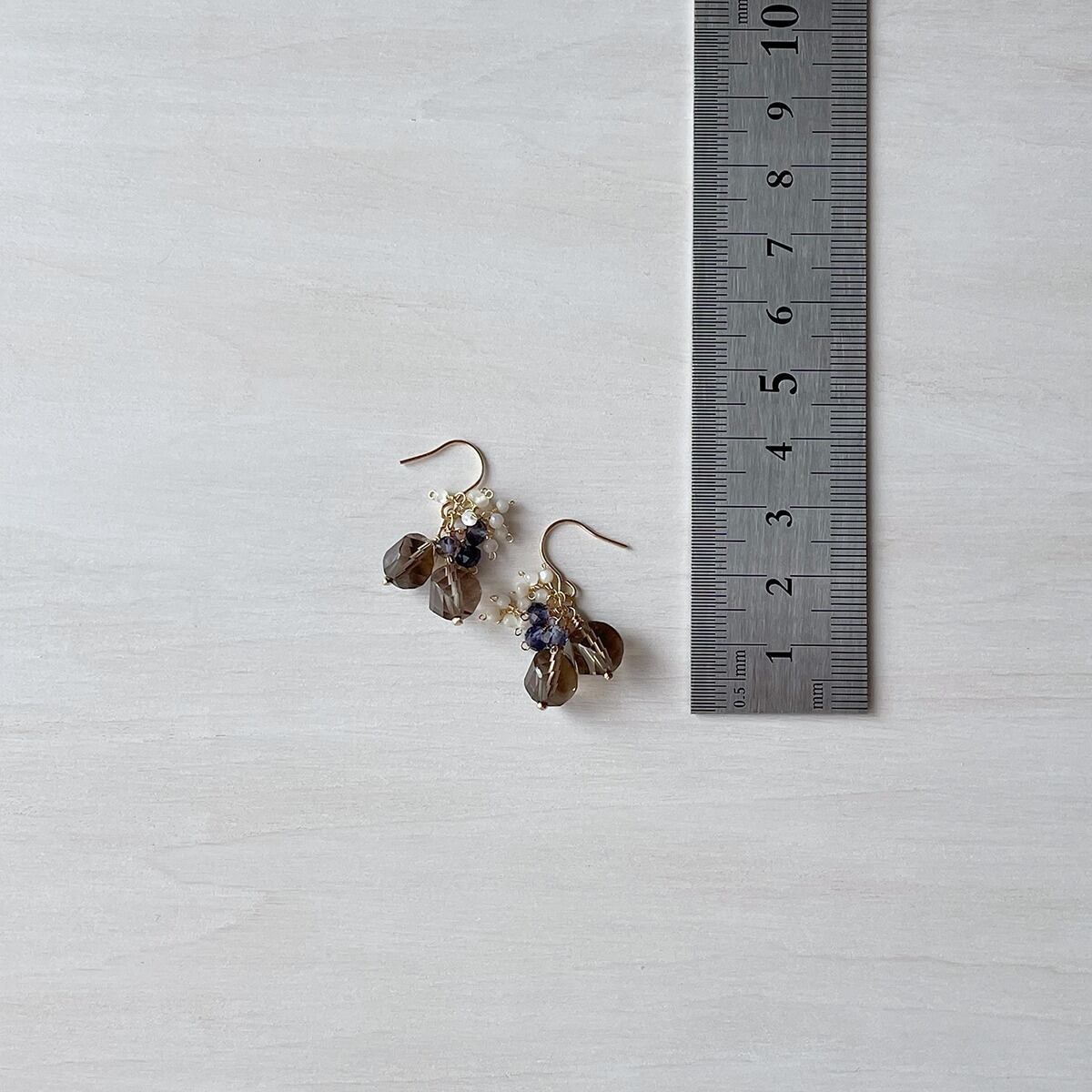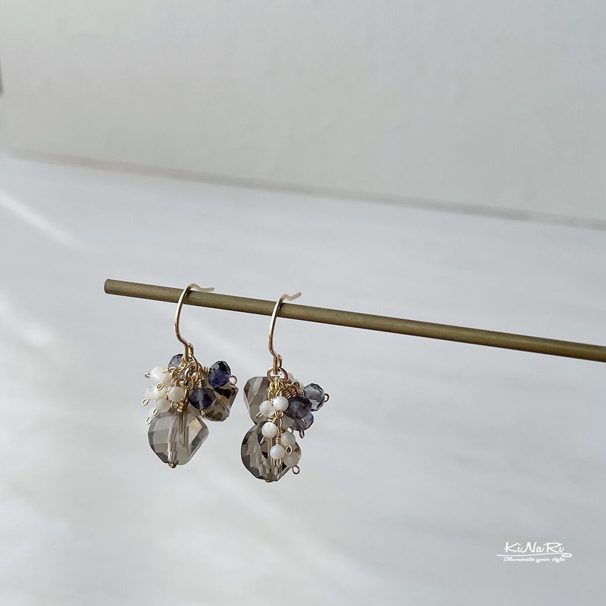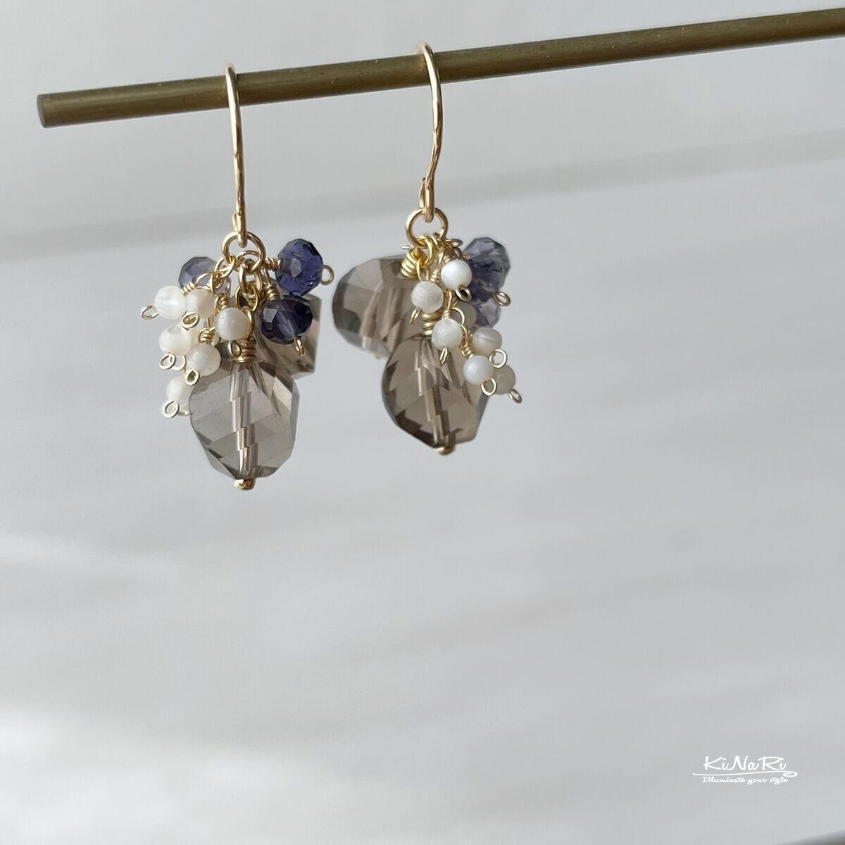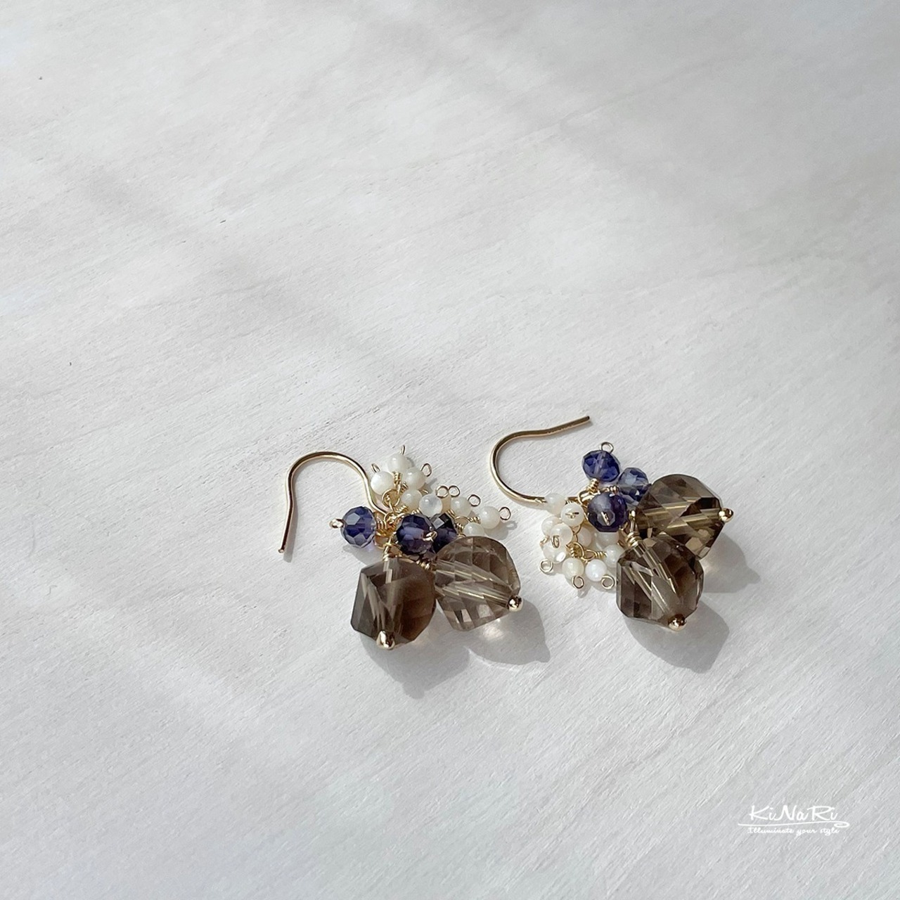 スモーキークォーツ、ホワイトシェル、アイオライト、14kgf(すべての金具)