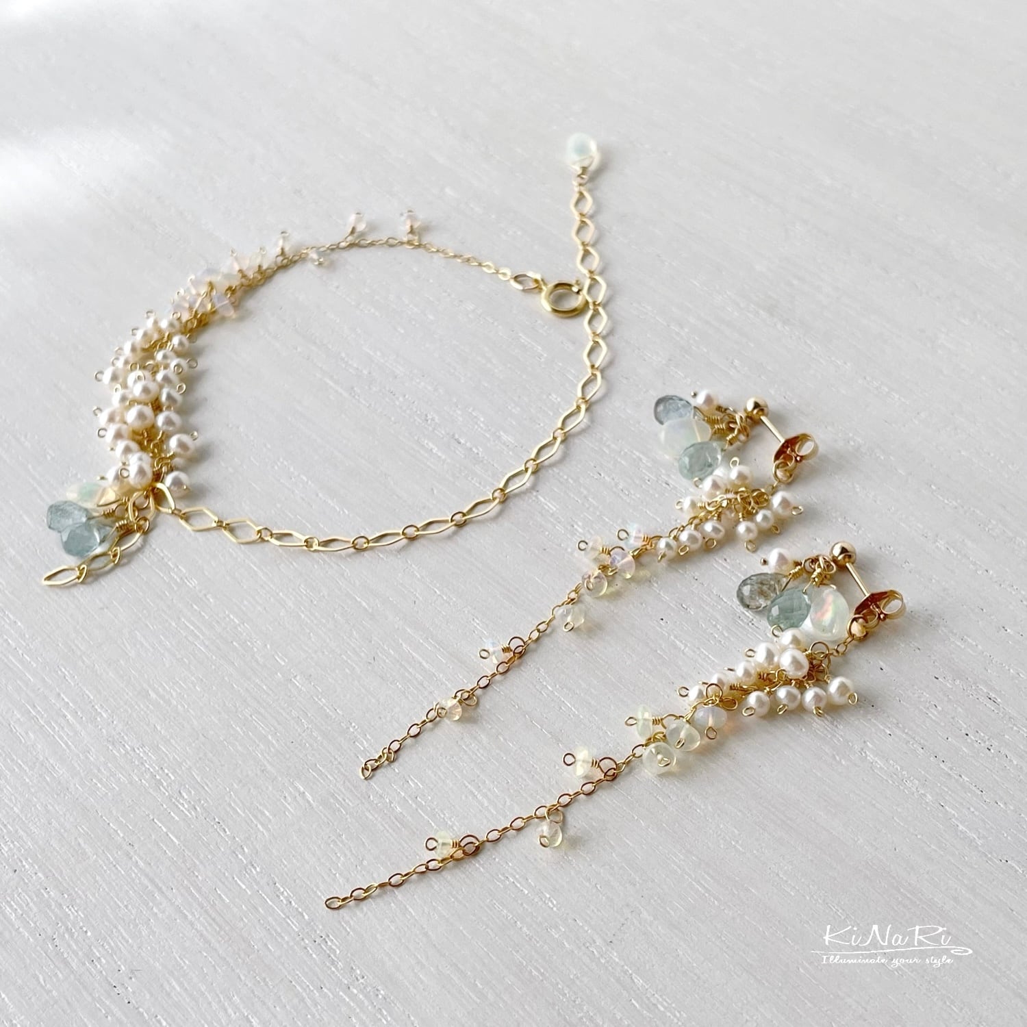 モスアクアマリン、エチオピアンオパール、淡水パール、14kgf(すべての金具)